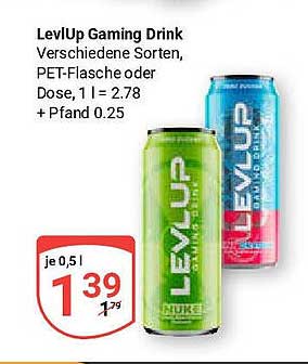 Sehen Sie sich jetzt das LevUp Gaming Drink - Verschiedene Sorten in PET-Flasche oder Dose Angebot im Globus Prospekt an. Dieses Angebot ist gültig von 28.07.2025 bis 02.08.2025.