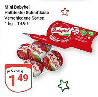 Sehen Sie sich jetzt das Mini Babybel Halbfester Schnittkäse Angebot im Globus Prospekt an. Dieses Angebot ist gültig von 16.12.2024 bis 24.12.2024.