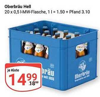 Sehen Sie sich jetzt das Oberbräu Hell – Kiste mit 20 x 0,5 l MW-Flasche Angebot im Globus Prospekt an. Dieses Angebot ist gültig von 28.04.2025 bis 03.05.2025.