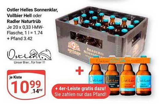 Ostler Helles Sonnenklar, Vollbier Hell Oder Radler Naturtrüb Angebot bei Globus