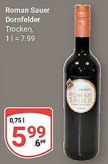 Sehen Sie sich jetzt das Roman Sauer Dornfelder Trocken Angebot im Globus Prospekt an. Dieses Angebot ist gültig von 06.10.2025 bis 11.10.2025.
