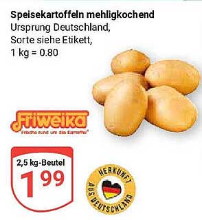 Für nur 1,99 € erhalten Sie einen 2,5 kg Beutel dieser köstlichen Speisekartoffeln. Im Vergleich zu anderen Anbietern, die ähnliche Qualitäten zu höheren Preisen anbieten, ist dies ein echtes Schnäppchen. Der Normalpreis für 1 kg dieser Kartoffeln liegt bei 0,80 €, was bedeutet, dass Sie bei diesem Angebot nicht nur sparen, sondern auch in Qualität investieren.