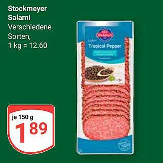 Sehen Sie sich jetzt das Stockmeyer Salami - Verschiedene Sorten, je 150 g für nur 1,89 € Angebot im Globus Prospekt an. Dieses Angebot ist gültig von 06.10.2025 bis 11.10.2025.