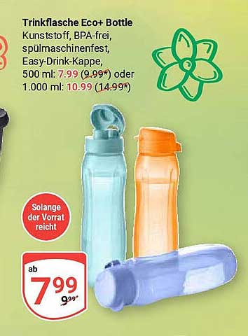 Zum Sonderpreis von nur 5,49 € im Globus-Prospekt ist die Eco+ Bottle ein echtes Schnäppchen, da der reguläre Preis bei 7,99 € beginnt. Das bedeutet für Sie eine Ersparnis von 30 %. Nutzen Sie diese Gelegenheit, um stilvoll und nachhaltig Ihren Durst zu stillen!