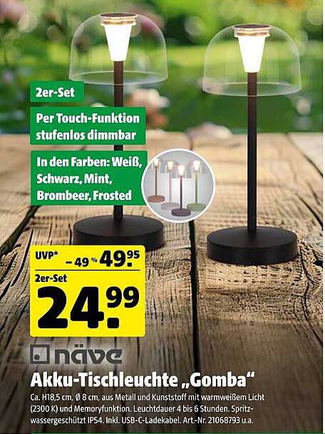 Entdecken Sie die vielseitigen Akku-Tischleuchten „Gomba“, die nicht nur funktional, sondern auch ästhetisch sind. Diese Leuchten sind ideal für den Innen- und Außenbereich und machen jede Umgebung gemütlicher. Mit einer stufenlosen Dimmfunktion per Touch haben Sie die volle Kontrolle über die Helligkeit und Atmosphäre Ihrer Räume. Jetzt zum Sonderpreis erhältlich, profitieren Sie von einem unschlagbaren Angebot auf dieser Seite!
