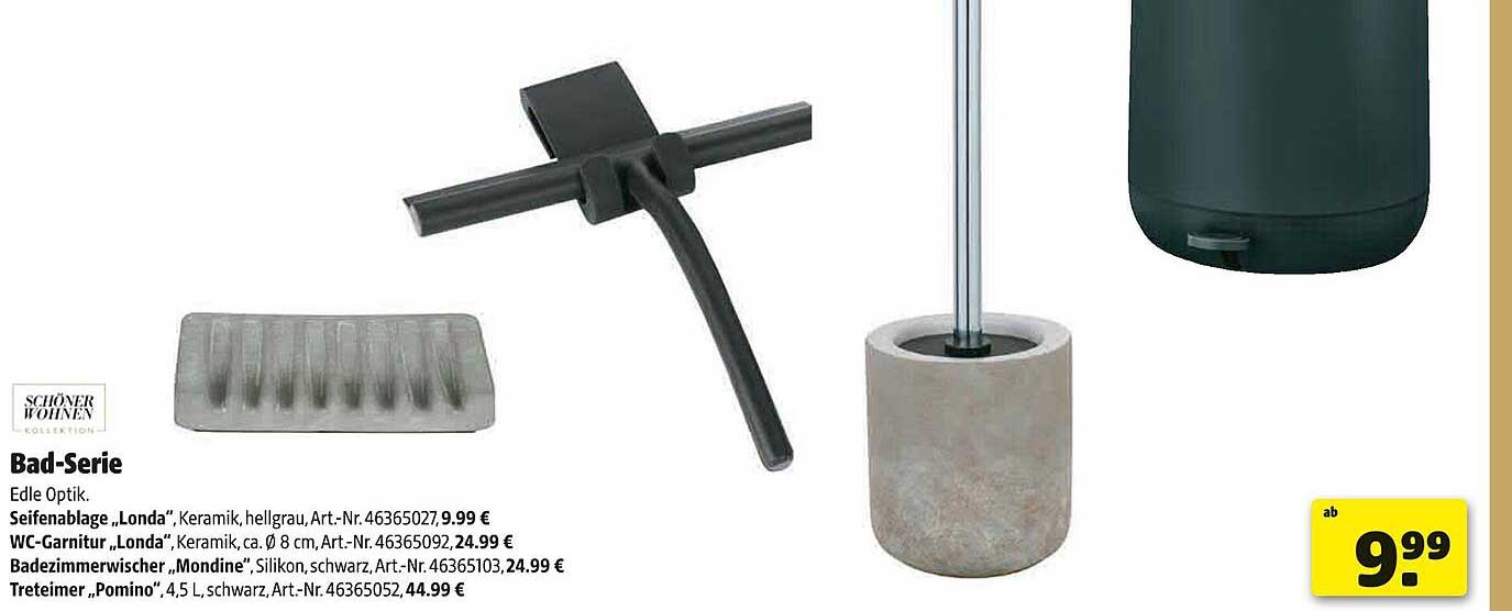 Der aktuelle Preis für die Seifenablage "Londa" liegt bei nur 9,99 € – ein echtes Schnäppchen im Vergleich zum ursprünglichen Preis von 12,99 €. Das WC-Garnitur ist für 24,99 € erhältlich und der Badezimmerwischer für 24,99 €. Im Vergleich zu anderen Anbietern können Sie hier echte Einsparungen erzielen. Nutzen Sie die Gelegenheit und statten Sie Ihr Badezimmer stilvoll und günstig aus!