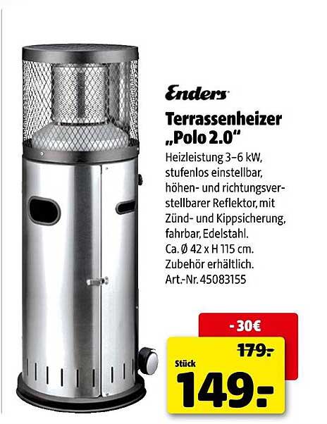 Das Angebot ist verfügbar auf dieser Seite, wo auch weitere tolle Angebote für Dein Zuhause warten. Lass Dir die Möglichkeit nicht entgehen, Deinen Außenbereich mit dem Enders Terrassenheizer zu erweitern!