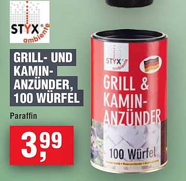 Aktuell erhalten Sie die STYX Grill- und Kaminanzünder für nur 3,99 €. Im Vergleich zum regulären Preis bietet dieses Angebot eine attraktive Ersparnis, die es wert ist, genutzt zu werden. Stellen Sie sicher, dass Sie genügend von diesen praktischen Anzündern auf Lager haben, bevor das Angebot ausläuft!