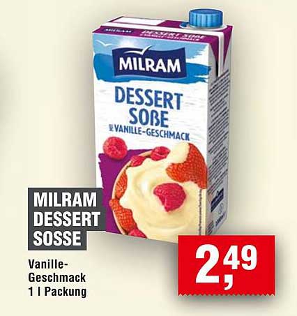 Die MILRAM Dessert Soße überzeugt durch ihre hohe Qualität und besten Zutaten. Sie ist in einer praktischen 1-Liter-Packung erhältlich und hat einen feinen, süßen Vanillegeschmack, der besonders harmonisch und cremig ist. Diese Soße ist ideal für zahlreiche Kreationen, sei es für Ihre selbstgemachten Desserts, Torten oder einfach als Topping für Eis und Pudding.