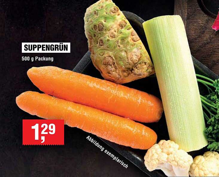 Der aktuelle Preis von nur 1,29 € macht dieses Angebot besonders attraktiv. Im Vergleich zu den regulären Preisen im Handel sparen Sie hier erheblich. Nutzen Sie die Gelegenheit und kaufen Sie frisches Suppengrün, um köstliche Gerichte zu zaubern, ohne Ihr Budget zu strapazieren!