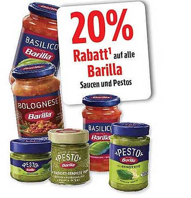 Normalerweise kosten Barilla Saucen und Pestos etwas mehr, aber dank dieses Angebots können Sie bis zu 20% sparen! Nutzen Sie die Gelegenheit, um Ihre Vorräte aufzufüllen und innovative Gerichte auszuprobieren.