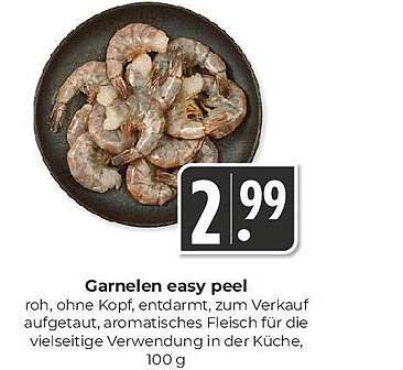 Entdecken Sie die köstlichen Garnelen easy peel, die perfekt für eine Vielzahl von Gerichten geeignet sind. Ob in einem frischen Salat, einem aromatischen Curry oder als Beilage zu Pasta – diese Garnelen bringen den Geschmack des Meeres direkt auf Ihren Teller. Ideal für alle, die sich gesunde und schmackhafte Mahlzeiten wünschen!