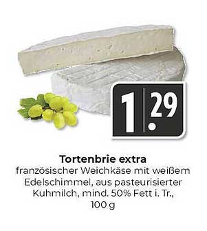 Der Tortenbrie extra ist mit einem speziellen Angebotspreis von nur 1,29 € ein wahrer Geheimtipp! Zum Vergleich: Der reguläre Preis liegt häufig deutlich höher. Nutzen Sie die Chance und profitieren Sie von diesen Ersparnissen, während Sie gleichzeitig einen exquisiten Käse auswählen.