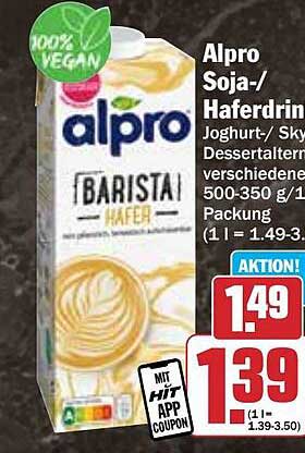 Sehen Sie sich jetzt das Alpro Soja-/Haferdrink Angebot im Hit Prospekt an. Dieses Angebot ist gültig von 14.10.2024 bis 20.10.2024.