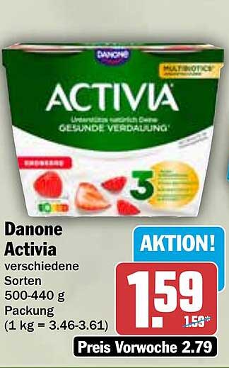 Sehen Sie sich jetzt das Danone Activia verschiedene Sorten 500-440 g Angebot im Hit Prospekt an. Dieses Angebot ist gültig von 15.09.2025 bis 20.09.2025.