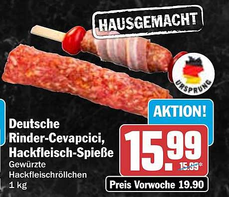 Sehen Sie sich jetzt das Deutsche Rinder-Cevapcici, Hackfleisch-Spieße 1 kg Angebot im Hit Prospekt an. Dieses Angebot ist gültig von 06.10.2025 bis 11.10.2025.