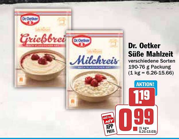 Sehen Sie sich jetzt das Dr. Oetker Süße Mahlzeit - verschiedene Sorten Angebot im Hit Prospekt an. Dieses Angebot ist gültig von 03.11.2025 bis 08.11.2025.