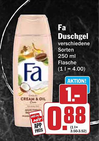 Sehen Sie sich jetzt das Fa Duschgel verschiedene Sorten 250 ml Flasche Angebot im Hit Prospekt an. Dieses Angebot ist gültig von 02.06.2025 bis 07.06.2025.