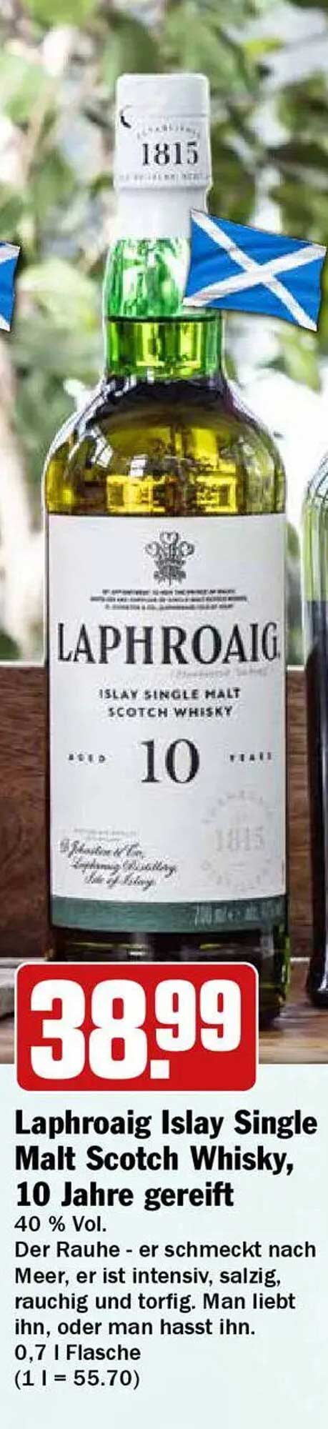 Sehen Sie sich jetzt das Laphroaig Islay Single Malt Scotch Whisky, 10 Jahre gereift Angebot im Hit Prospekt an. Dieses Angebot ist gültig von 24.03.2025 bis 19.04.2025.