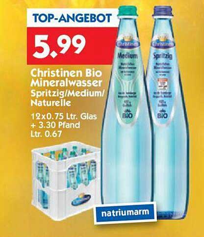 Sehen Sie sich das Christinen Bio Mineralwasser Spritzig/Medium/Naturelle Angebot bei Hol'ab Getränkemarkt an! Dieses fantastische Angebot ist jetzt im neuesten Hol'ab Getränkemarkt Prospekt verfügbar. Nutzen Sie diese Chance und sparen Sie viel bei Ihrem Einkauf.