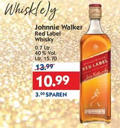 Sehen Sie sich das Johnnie Walker Red Label Whisky Angebot bei Hol'ab Getränkemarkt an! Dieses fantastische Angebot ist jetzt im neuesten Hol'ab Getränkemarkt Prospekt verfügbar. Nutzen Sie diese Chance und sparen Sie viel bei Ihrem Einkauf.