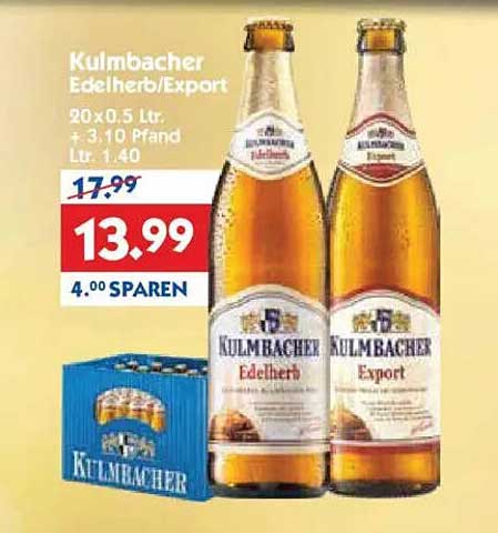 Sehen Sie sich jetzt das Kulmbacher Edelherb/Export 20 x 0,5 Ltr. Angebot im Hol'ab Getränkemarkt Prospekt an. Dieses Angebot ist gültig von 13.10.2025 bis 18.10.2025.