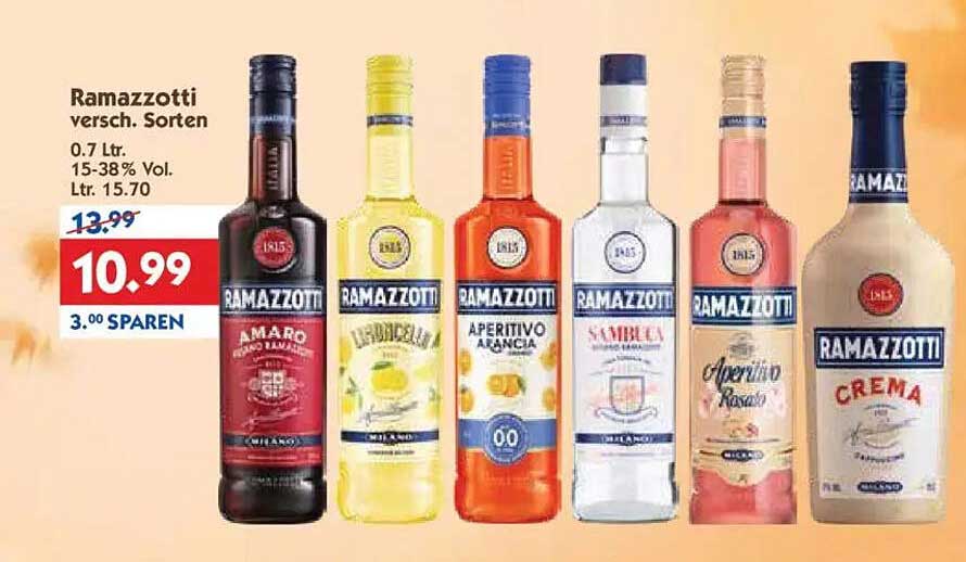 Zum aktuellen Preis von nur 10,99 € (statt 13,99 €) sparen Sie 3,00 €. Ein perfekter Zeitpunkt, um die Vielfalt von Ramazzotti zu entdecken und gleichzeitig Geld zu sparen – ein echtes Schnäppchen für alle Liebhaber feiner Spirituosen!
