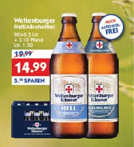 Sehen Sie sich das Weltenburger Hell/Alkoholfrei Angebot bei Hol'ab Getränkemarkt an! Dieses fantastische Angebot ist jetzt im neuesten Hol'ab Getränkemarkt Prospekt verfügbar. Nutzen Sie diese Chance und sparen Sie viel bei Ihrem Einkauf.