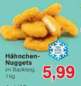 Genießen Sie köstliche Hähnchen-Nuggets, die perfekt für jedes Essen geeignet sind! Ob für ein schnelles Mittagessen, ein gemütliches Abendessen oder als Snack für die nächste Feier, diese Nuggets sind die idealen Begleiter. Mit einem unwiderstehlichen Geschmack und einer knusprigen Textur bringen sie Freude auf den Teller. Das Angebot ist gültig vom 2025-07-28 bis zum 2025-08-02 und bietet Ihnen die Möglichkeit, dieses leckere Produkt zu einem hervorragenden Preis zu erwerben.