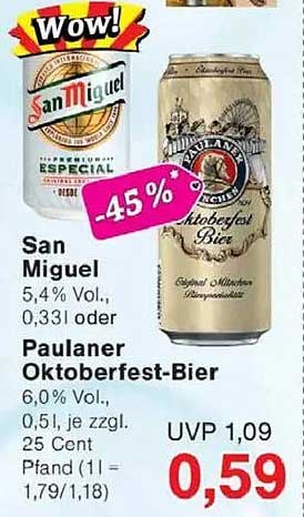 Das original Verkaufsangebot lag bei 1,09 € pro Dose, aber in diesem Zeitraum kannst du das Paulaner Oktoberfest-Bier für nur 0,59 € erwerben. Das entspricht einer sensationellen Einsparung von 45%! Dies macht dieses Angebot besonders attraktiv für alle, die gutes Bier schätzen.