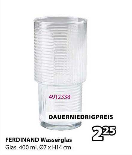 Aktuell ist das FERDINAND Wasserglas zum fantastischen Preis von nur 2,25 € erhältlich. Im Vergleich zum ursprünglichen Preis stellt dies eine bemerkenswerte Ersparnis dar und macht dieses Angebot besonders attraktiv für Schnäppchenjäger. Nutzen Sie die Gelegenheit, um Ihr Geschirr zu ergänzen, ohne dabei Ihr Budget zu sprengen!