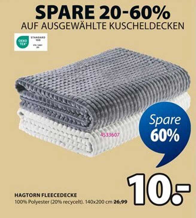 Entdecken Sie das großartige Hagtorn Fleecedecke Angebot im neuesten Jysk Prospekt. Neben diesem Angebot finden Sie noch viele weitere attraktive Rabatte. Sie können das Hagtorn Fleecedecke einfach online über die Jysk Website bestellen oder in einem Geschäft in Ihrer Nähe kaufen.