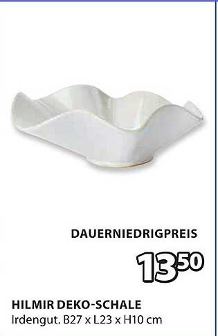Sehen Sie sich jetzt das HILMIR DEKO-SCHALE Angebot im Jysk Prospekt an. Dieses Angebot ist gültig von 30.03.2025 bis 03.05.2025.