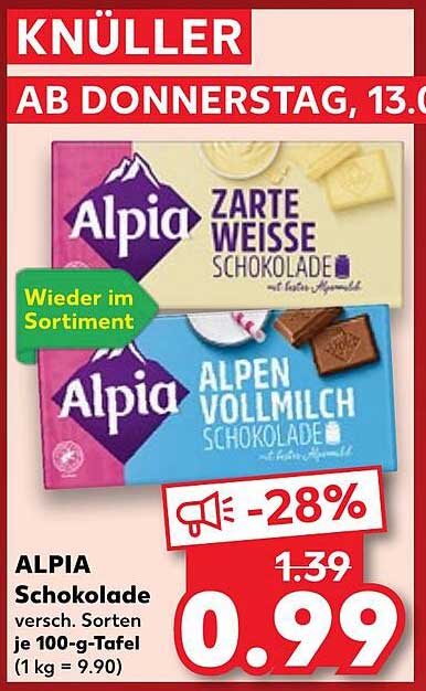 Sehen Sie sich das Alpia Schokolade Angebot bei Kaufland an! Dieses fantastische Angebot ist jetzt im neuesten Kaufland Prospekt verfügbar. Nutzen Sie diese Chance und sparen Sie viel bei Ihrem Einkauf.