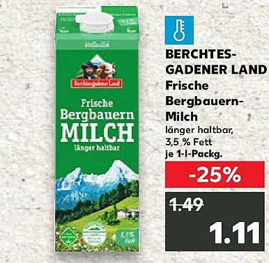 Sehen Sie sich jetzt das BERCHTES-GADENER LAND Frische Bergbauern-Milch 3,5 % Fett Angebot im Kaufland Prospekt an. Dieses Angebot ist gültig von 10.04.2025 bis 16.04.2025.