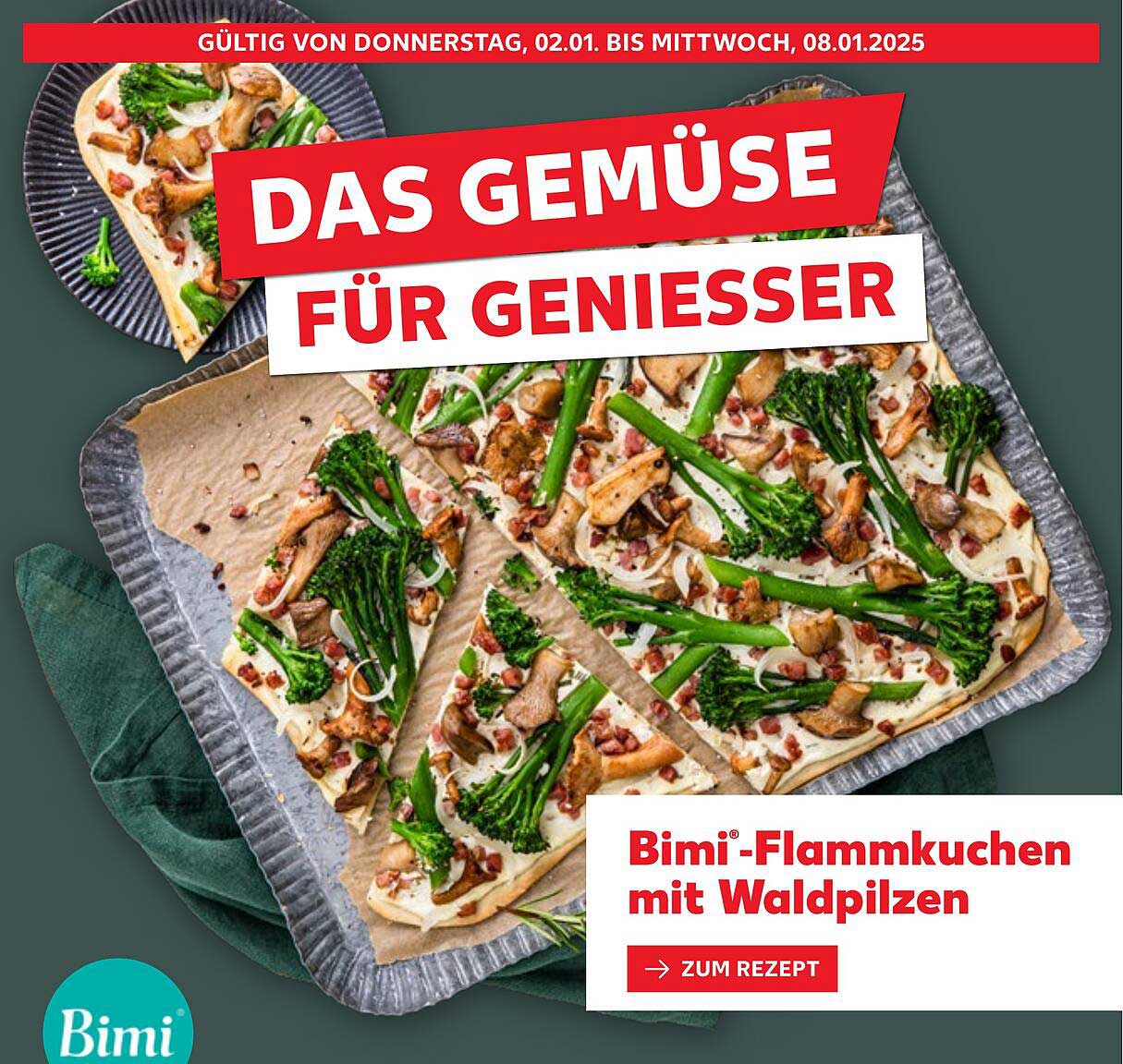 Sehen Sie sich jetzt das Bimi®-Flammkuchen mit Waldpilzen Angebot im Kaufland Prospekt an. Dieses Angebot ist gültig von 02.01.2025 bis 08.01.2025.