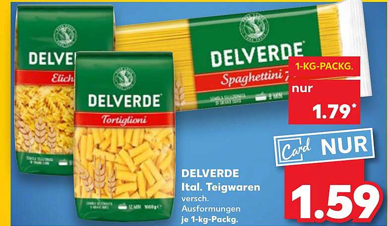 Sehen Sie sich das Delverde Ital. Teigwaren Angebot bei Kaufland an! Dieses fantastische Angebot ist jetzt im neuesten Kaufland Prospekt verfügbar. Nutzen Sie diese Chance und sparen Sie viel bei Ihrem Einkauf.