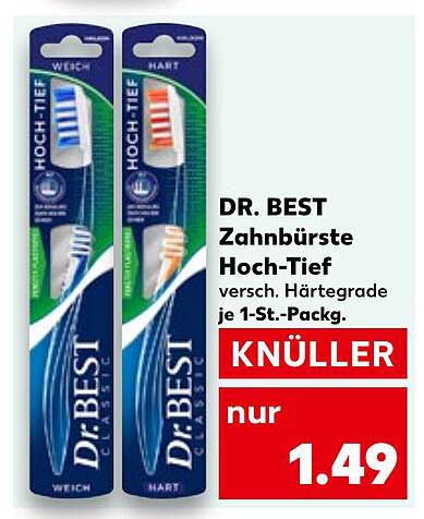 Entdecken Sie das großartige Dr. Best Zahnbürste Hoch-Tief Angebot im neuesten Kaufland Prospekt. Neben diesem Angebot finden Sie noch viele weitere attraktive Rabatte. Sie können das Dr. Best Zahnbürste Hoch-Tief einfach online über die Kaufland Website bestellen oder in einem Geschäft in Ihrer Nähe kaufen.