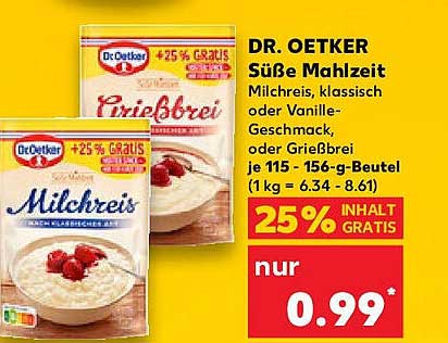 Sehen Sie sich jetzt das DR. OETKER Süße Mahlzeit - Milchreis, klassisch oder Vanille-Geschmack, oder Grießbrei Angebot im Kaufland Prospekt an. Dieses Angebot ist gültig von 05.10.2025 bis 08.10.2025.