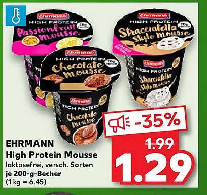 Sehen Sie sich jetzt das EHRMANN High Protein Mousse - Verschiedene Sorten Angebot im Kaufland Prospekt an. Dieses Angebot ist gültig von 10.04.2025 bis 16.04.2025.