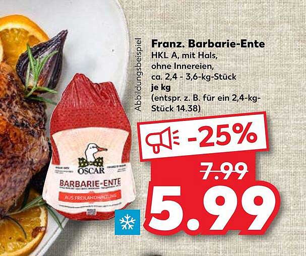 Sehen Sie sich jetzt das Franz. Barbarie-Ente Angebot im Kaufland Prospekt an. Dieses Angebot ist gültig von 24.10.2024 bis 31.10.2024.
