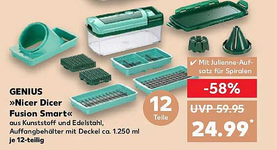 Sehen Sie sich jetzt das GENIUS »Nicer Dicer Fusion Smart« Angebot im Kaufland Prospekt an. Dieses Angebot ist gültig von 05.10.2025 bis 08.10.2025.