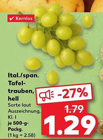 Der reguläre Preis für diese Trauben liegt bei 1,79 €, jetzt aber profitieren Sie von einem unglaublichen Rabatt von 27%! Kaufen Sie diese köstlichen Tafeltrauben für nur 1,29 €. Damit sparen Sie nicht nur Geld, sondern gönnen sich und Ihrer Familie einen gesunden Genuss.