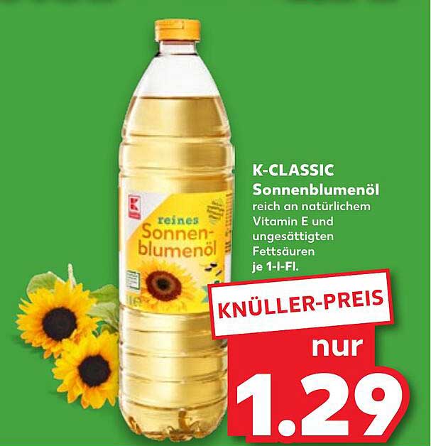 Schauen Sie sich auch die weiteren attraktiven Angebote auf dieser Seite an und sichern Sie sich die besten Deals für Ihren Wocheneinkauf! Das K-CLASSIC Sonnenblumenöl ist nur eines von vielen Verlockungen, die auf Sie warten.