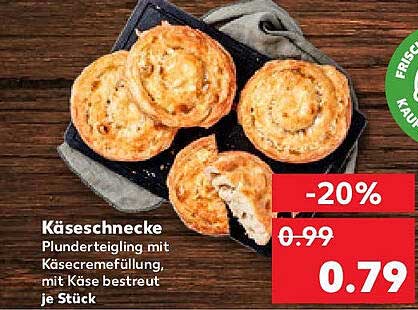 Der originale Preis von 0,99 € wurde um 20% gesenkt, sodass Sie jetzt nur 0,79 € pro Stück bezahlen. Diese Ersparnis von 20 Cent macht die Käse-Schnecke zu einem unschlagbaren Angebot. Ein erstklassiger Snack zu einem günstigen Preis!