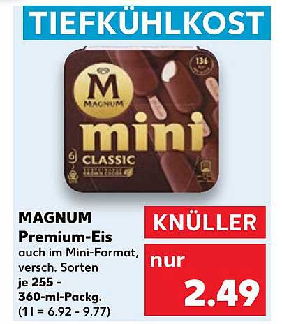 Sehen Sie sich das Magnum Mini Classic Angebot bei Kaufland an! Dieses fantastische Angebot ist jetzt im neuesten Kaufland Prospekt verfügbar. Nutzen Sie diese Chance und sparen Sie viel bei Ihrem Einkauf.