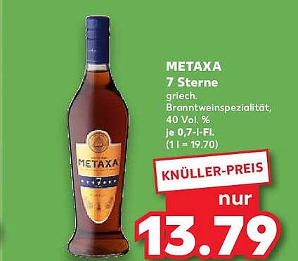 Sehen Sie sich jetzt das METAXA 7 Sterne - Branntweinspezialität aus Griechenland Angebot im Kaufland Prospekt an. Dieses Angebot ist gültig von 05.10.2025 bis 08.10.2025.
