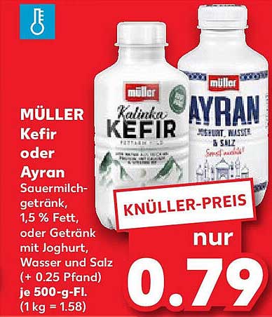 Sehen Sie sich jetzt das MÜLLER Kefir oder Ayran Sauermilchgetränk 500 g Angebot im Kaufland Prospekt an. Dieses Angebot ist gültig von 09.10.2025 bis 15.10.2025.