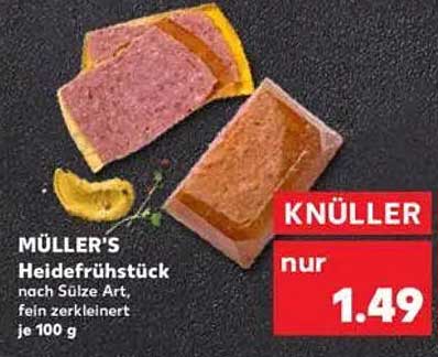 Sehen Sie sich jetzt das MÜLLER'S Heidefrühstück nach süße Art, fein zerkleinert, je 100 g Angebot im Kaufland Prospekt an. Dieses Angebot ist gültig von 27.03.2025 bis 02.04.2025.