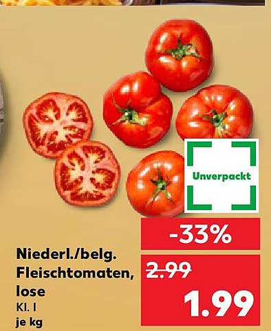 Fleischtomaten sind bekannt für ihre feste Konsistenz und ihren süßen Geschmack. Sie eignen sich hervorragend für Salate, Saucen und als Beilage. Durch die Reduzierung von 33% auf nur 1,99 Euro je kg können Sie bei Ihren Einkäufen sparen und gleichzeitig in hochwertige Lebensmittel investieren.